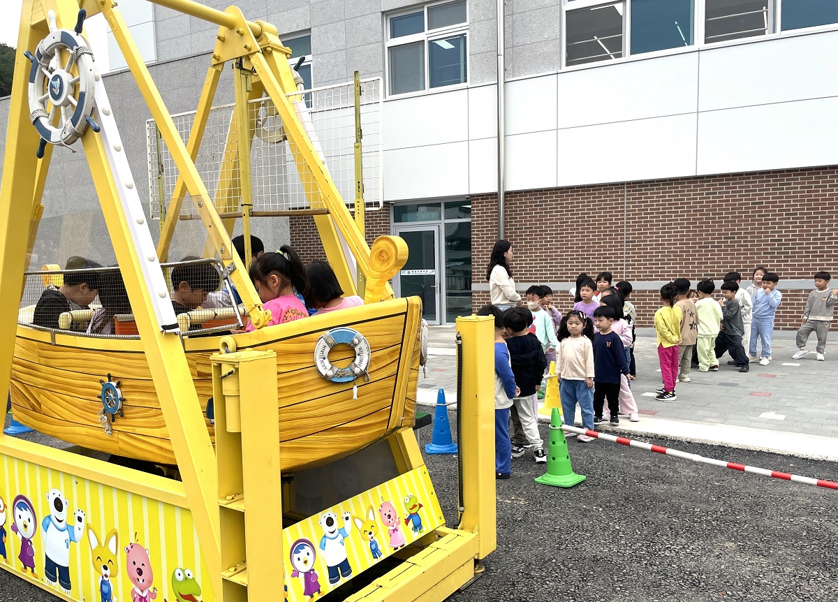 높이 높이 바이킹, 시간을 담은 기차, 환상의 회전목마 등 다양한 놀이기구를 병설유치원과 초등학교 사이에 배치하여 자유롭게 놀이할 수 있도록 환경을 구성하고 놀이공원에서 본 아이들의 경험을 회상하며 팝콘 파티와 페이스페인팅, 피크닉 텐트, 풍선꾸러미, 비눗방울 놀이 등 유·초 함께 힘을 모아 우리들만의 놀이공원이 만들어졌다.