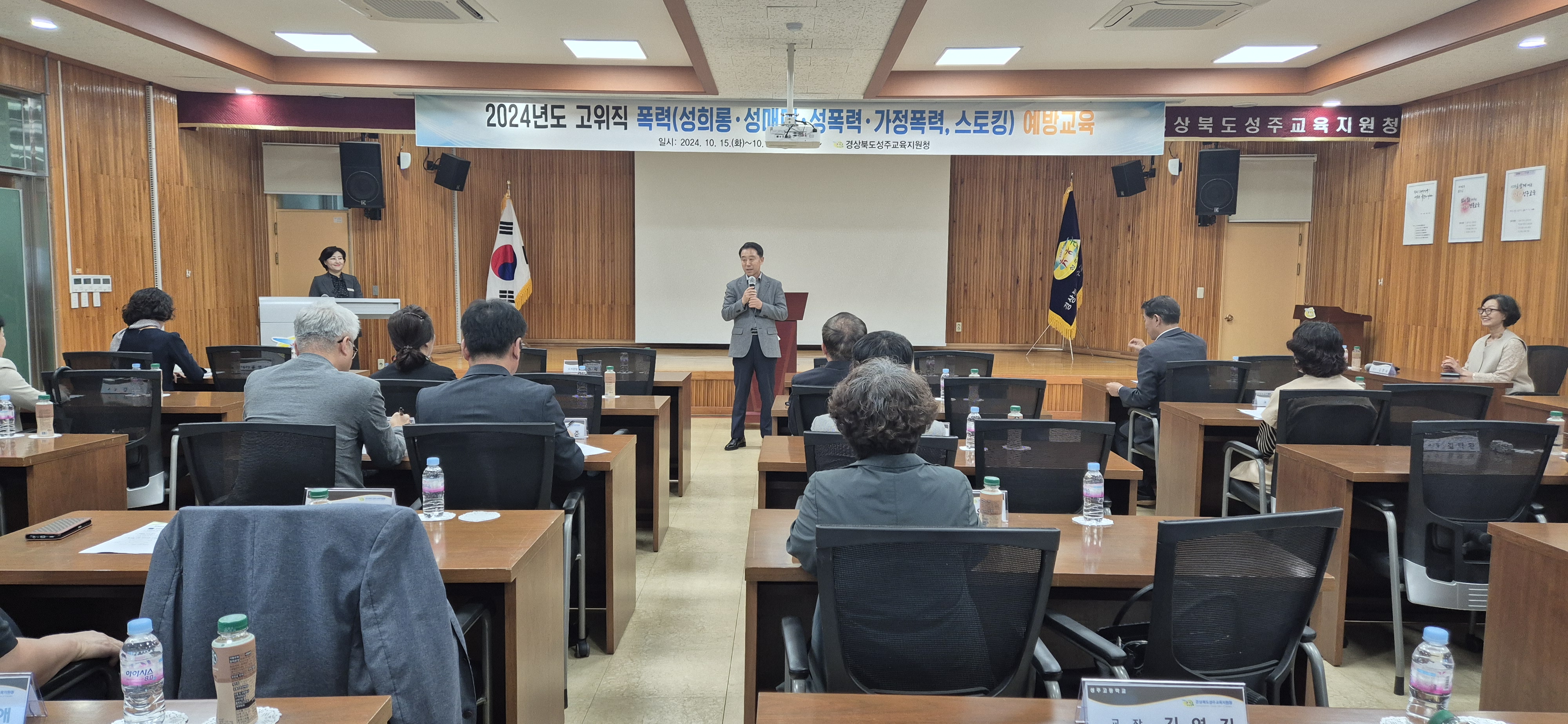 □ 경상북도성주교육지원청(교육장 정수권)은 2024년 10월 15일(화), 10월 16일(수) 양일간 성주교육지원청 대회의실에서 고위직 대상 성희롱·성폭력 별도 예방교육을 실시한다.