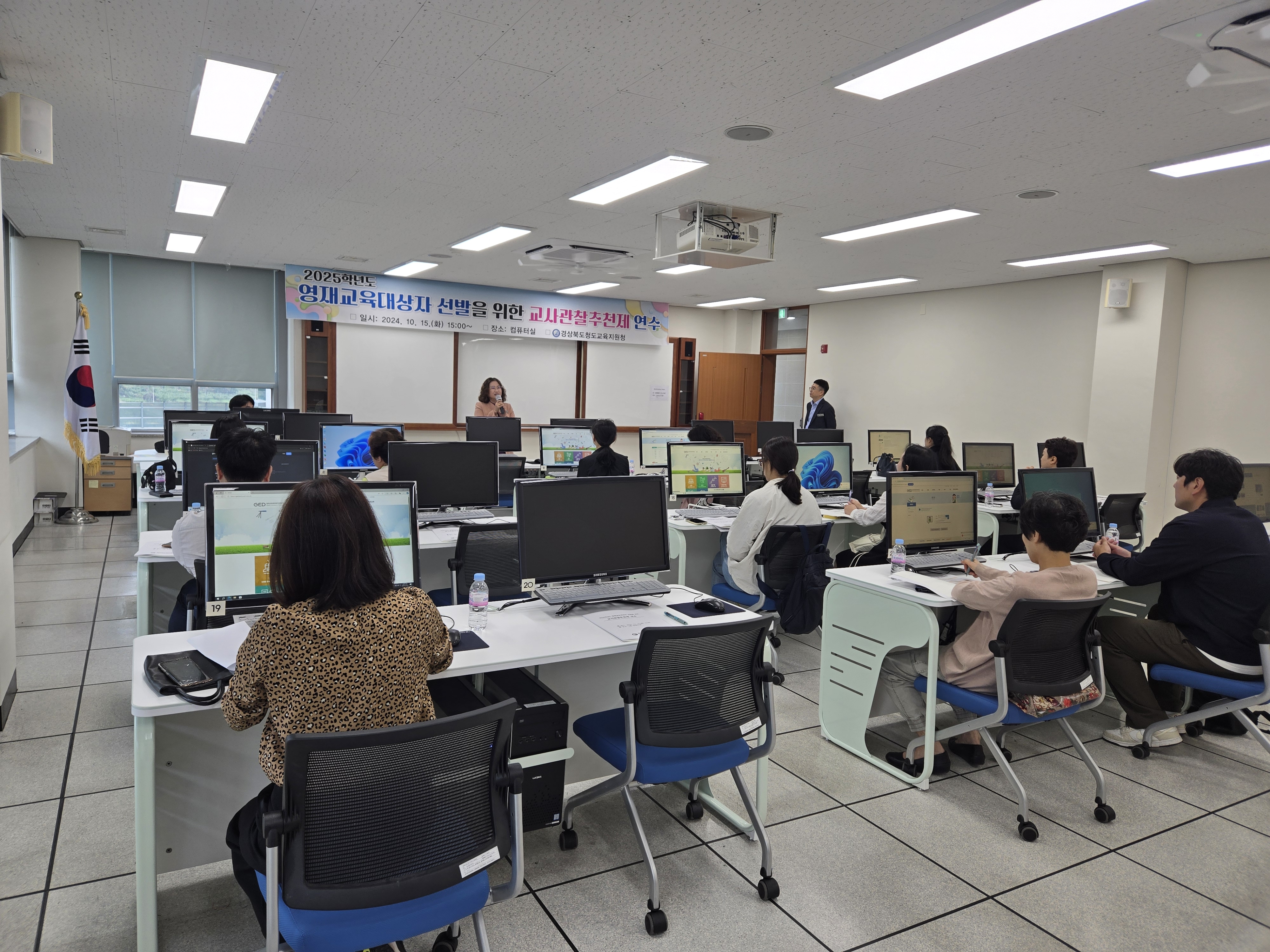 경상북도청도교육지원청(교육장 이시균)은 10월 15일(화) 오후3시 청도교육지원청 컴퓨터실에서 초, 중학교 영재교육 업무 담당 교사 및 영재강사 34명을 대상으로 2025학년도 영재교육대상자 선발을 위한 교사관찰추천제 연수를 실시하였다.