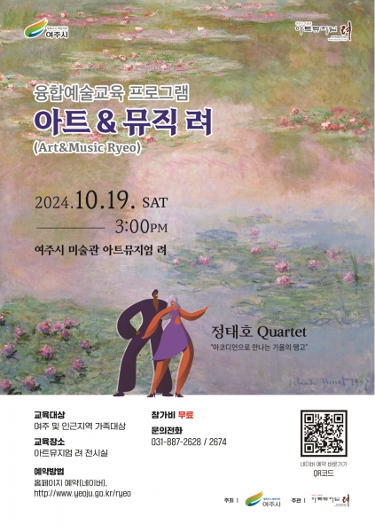 [금요저널] 여주시는 2024년 10월 19일 오후 3시, 미술관 ‘아트뮤지엄 려’에서 융합예술교육 프로그램 ‘아트&뮤직 려’를 진행한다.