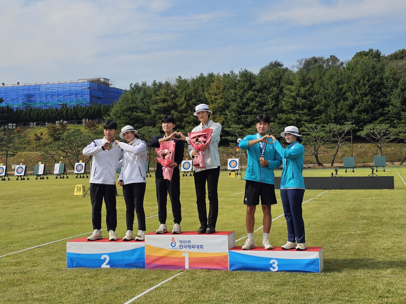 □ 경상북도 예천교육지원청(교육장 이창희)은 경남 김해에서 열리고 있는 제105회 전국 체육대회에서 경북일고 3학년 이주성 선수의 금메달(양궁 남녀 혼성 단체), 김대건 선수의 은메달(양궁 개인) 수상과 예천여고 2학년 채서현 선수의 은메달(장대높이뛰기) 수상을 알렸다.