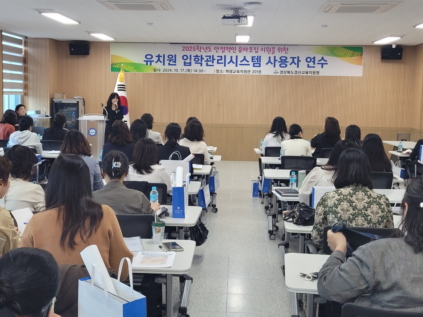 □ 경산교육지원청(교육장 박경화)은 10. 17.(목) 경산교육지원청 학생교육지원관 201호에서 관내 공·사립유치원 유치원 교원 60여명을 대상으로 2025학년도 유치원 입학관리시스템 연수를 실시하였다.