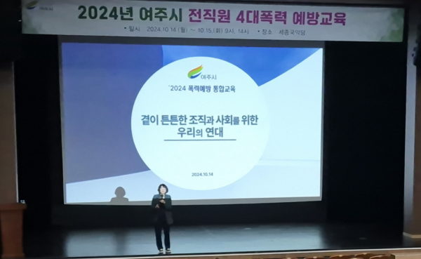[금요저널] 여주시는 지난 10월 14일과 15일 이틀 동안 세종국악당에서 6급 이하 전 직원을 대상으로 4대 폭력 예방 교육을 실시했다고 밝혔다.