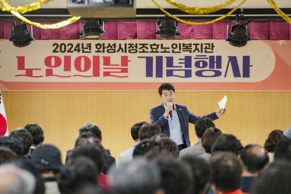 배정수 의장은 인사말을 통해 “뜻깊은 행사를 개최해 주신 정조효 노인복지관 관계자 여러분께 감사드린다”며 “어르신들께서 더 나은 삶을 살 수 있도록 화성시의회가 더욱 열심히 노력하겠다”고 전했다.