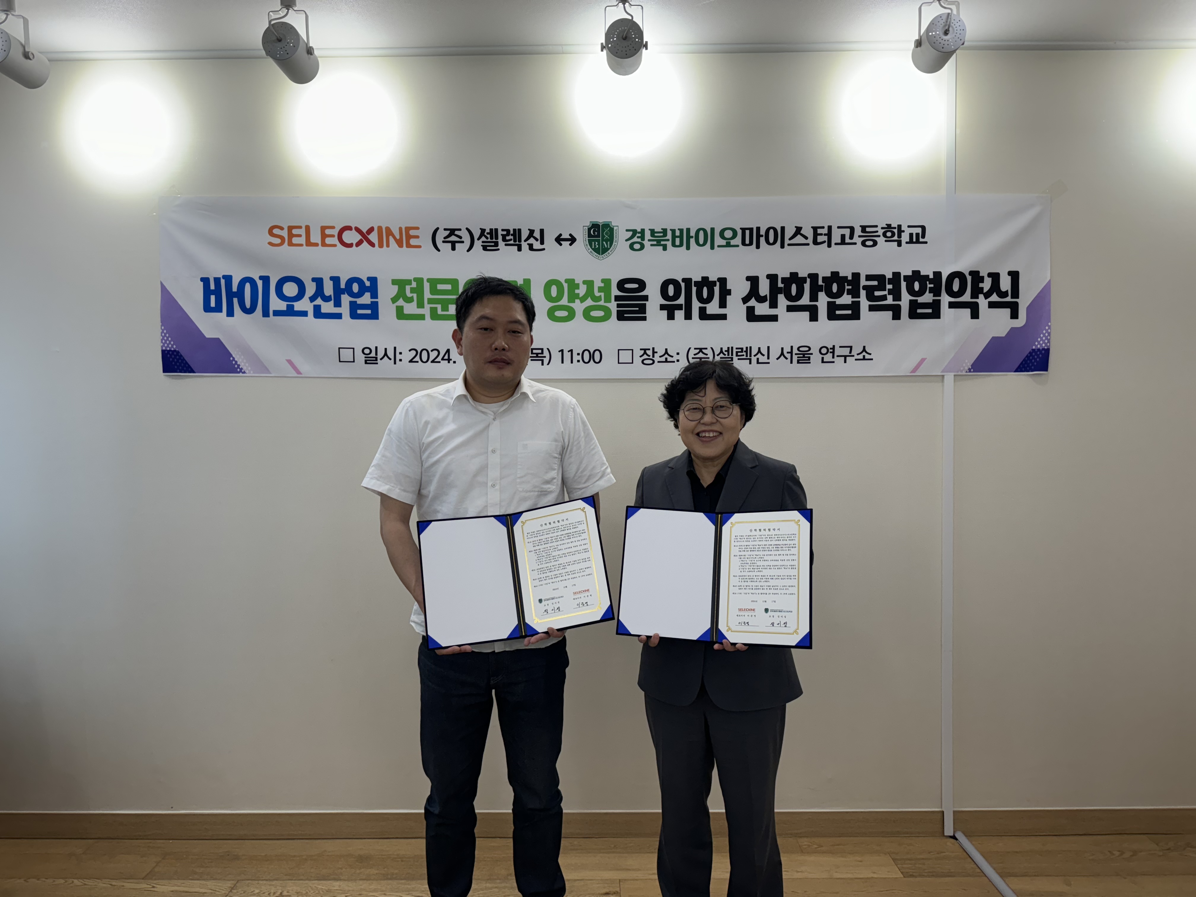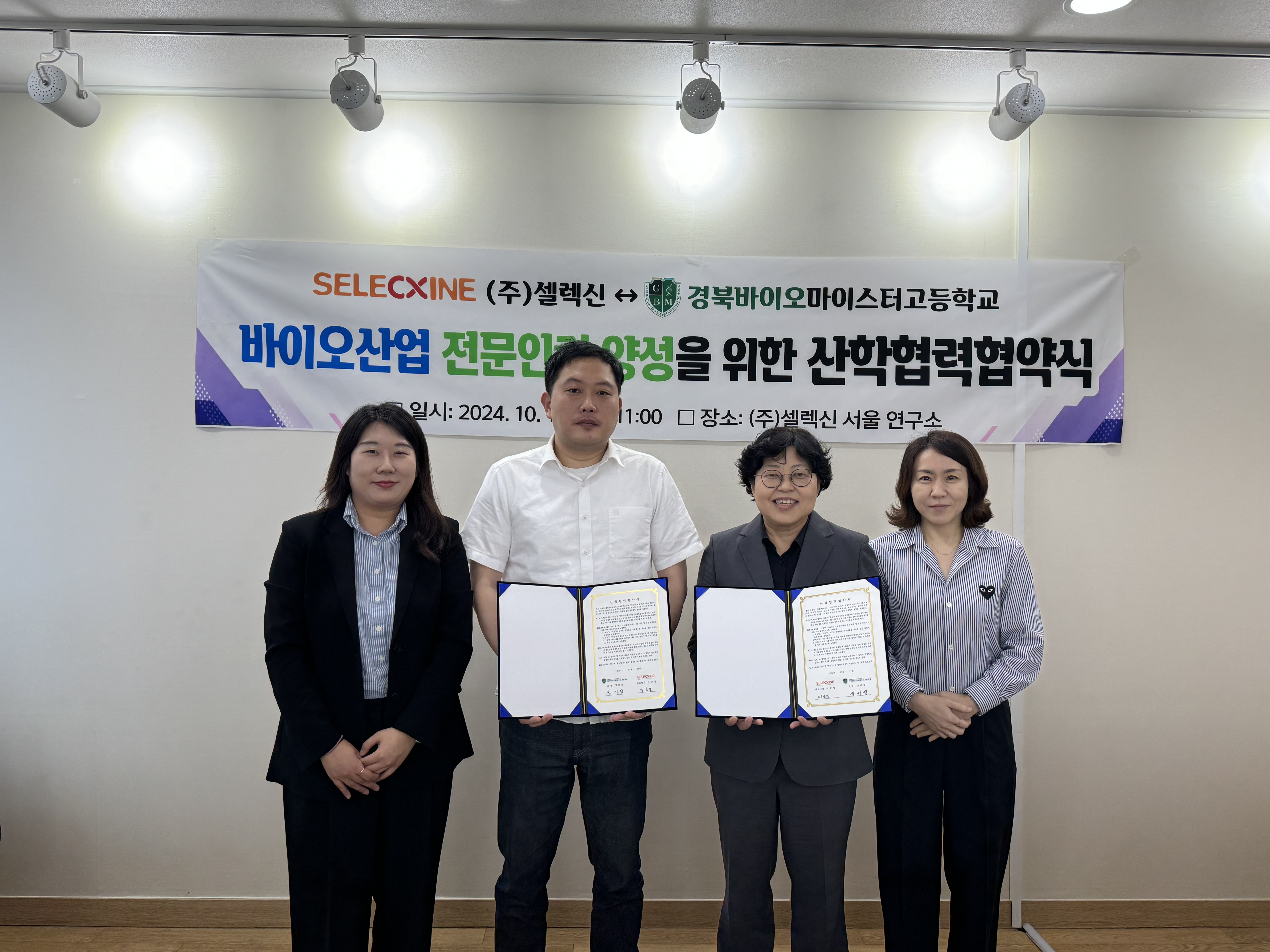 경북바이오마이스터고등학교(교장 정미정) 17일 셀렉신(대표 이준영)과 산학협력 협약을 체결했다고 밝혔다. 이번 협약은 바이오 분야의 인재 양성과 혁신적인 연구를 위한 협력을 강화하기 위해 마련되었다.