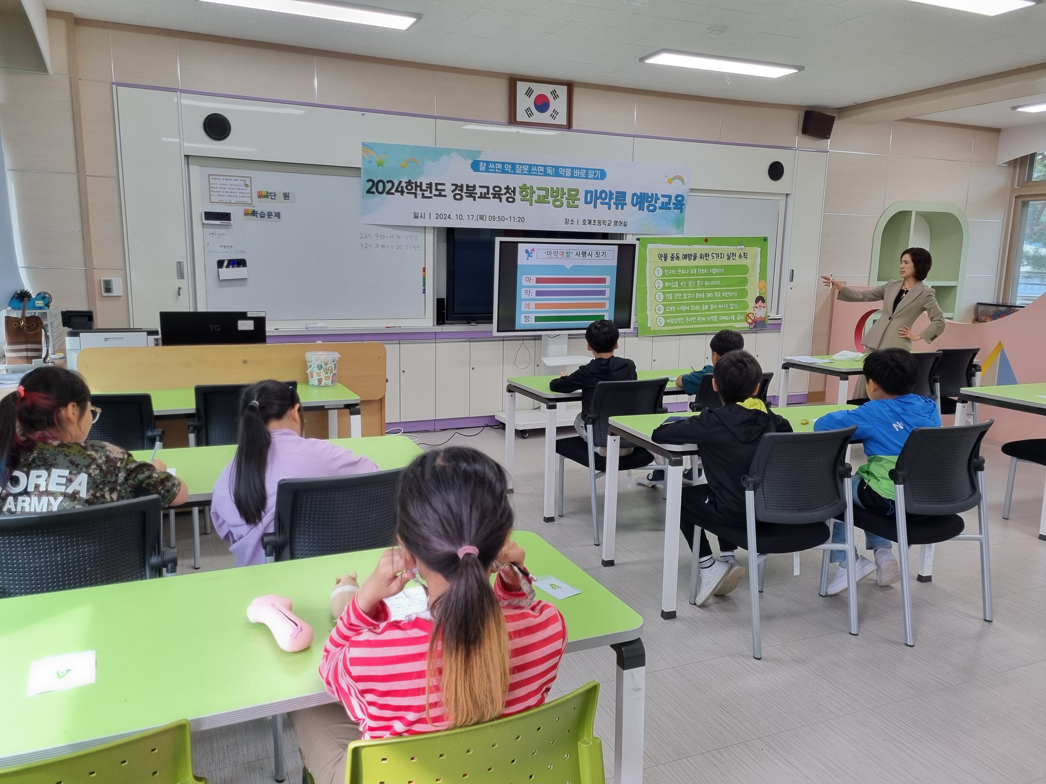 ▣ 호계초등학교(교장 조용태)는 2024년 10월 17일(목) 4~6학년을 대상으로 경북교육청 학교방문 마약류 예방교육을 실시했다.