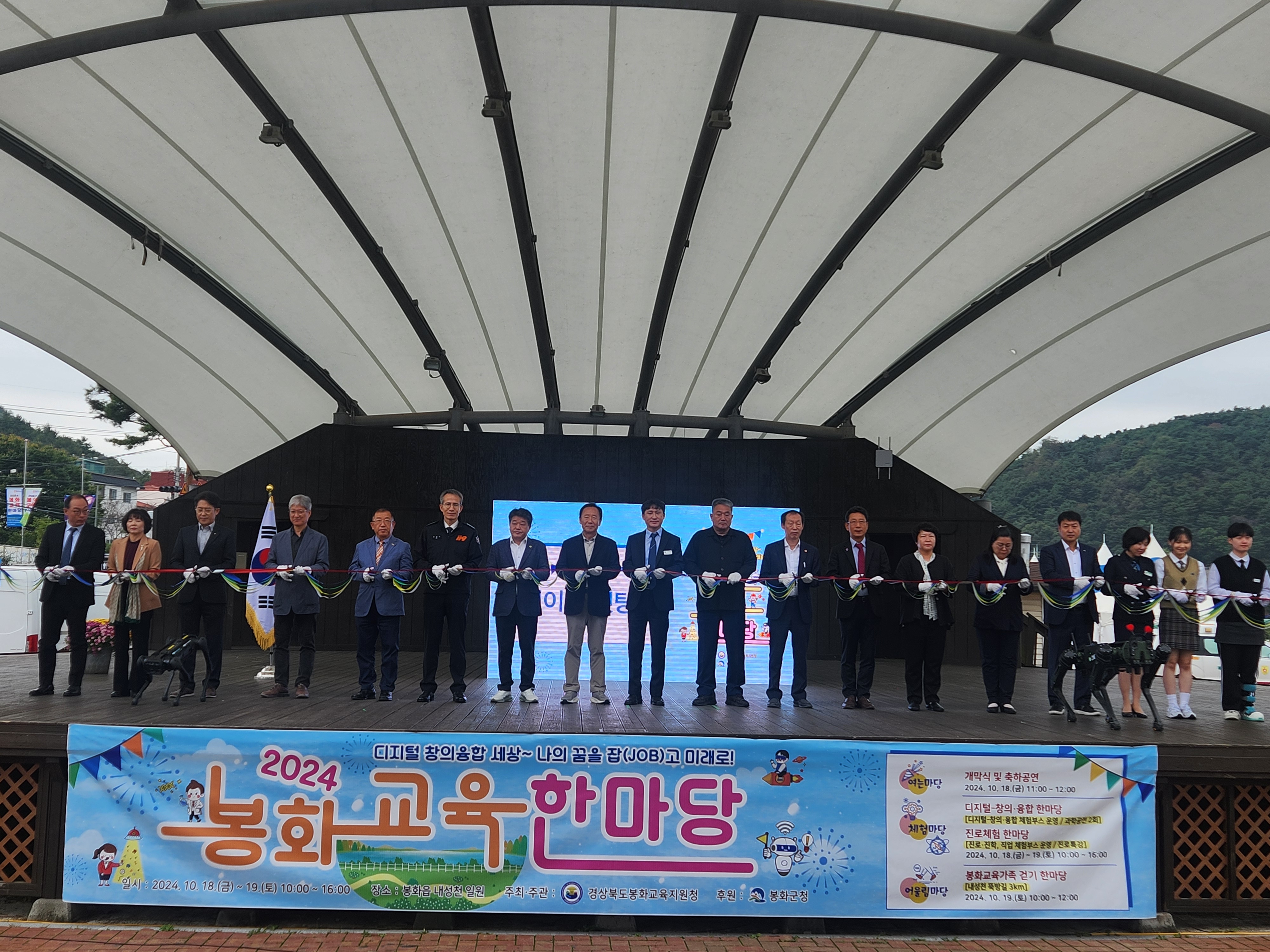 봉화교육지원청(교육장 이영록)이 10월 18일~19일 봉화읍 내성천 주무대 및 일원에서 디지털 창의・융합 세상~나의 꿈을 잡(JOB)고 미래로! 라는 주제로 봉화교육한마당을 성황리에 개최하였다.