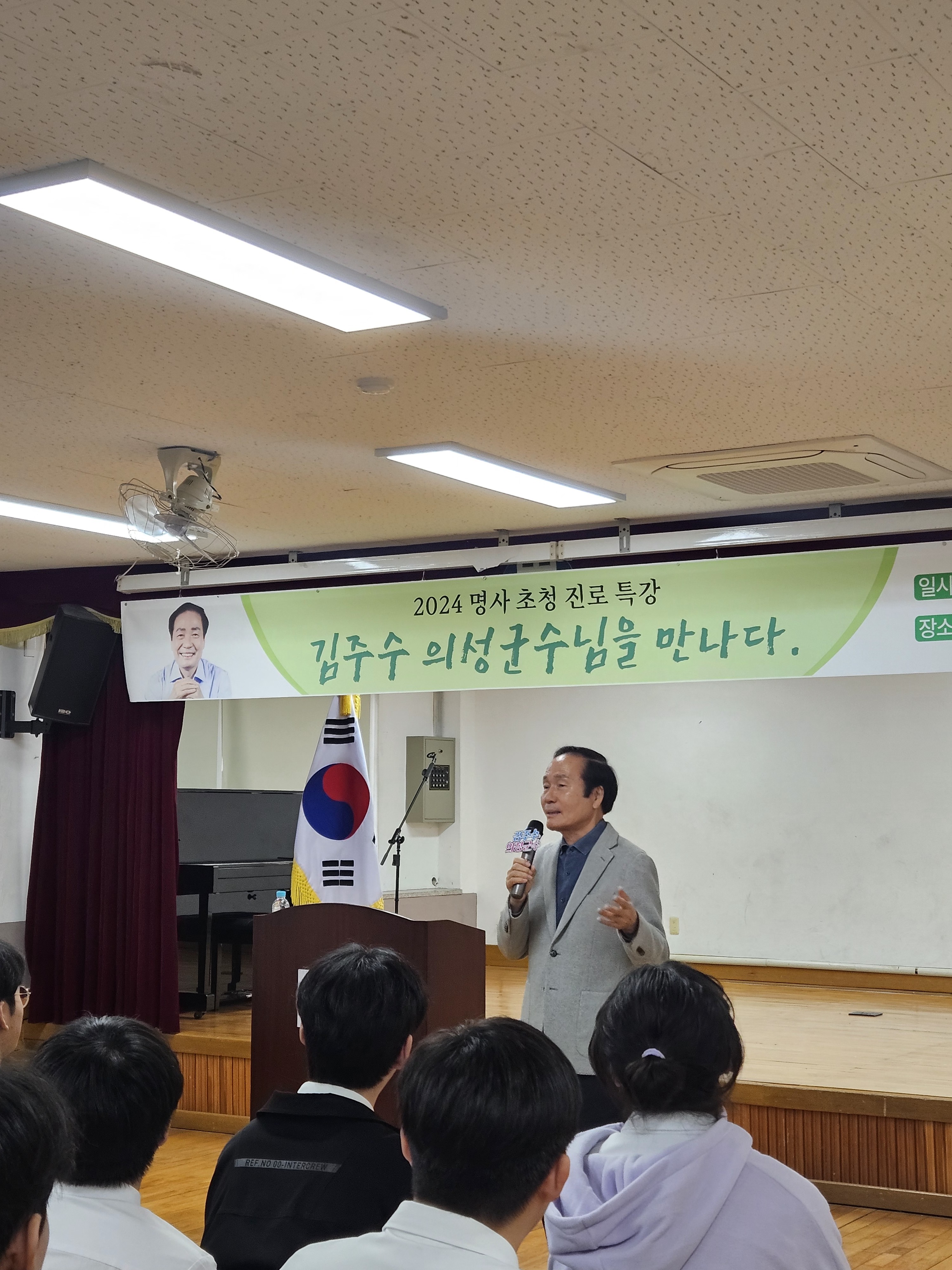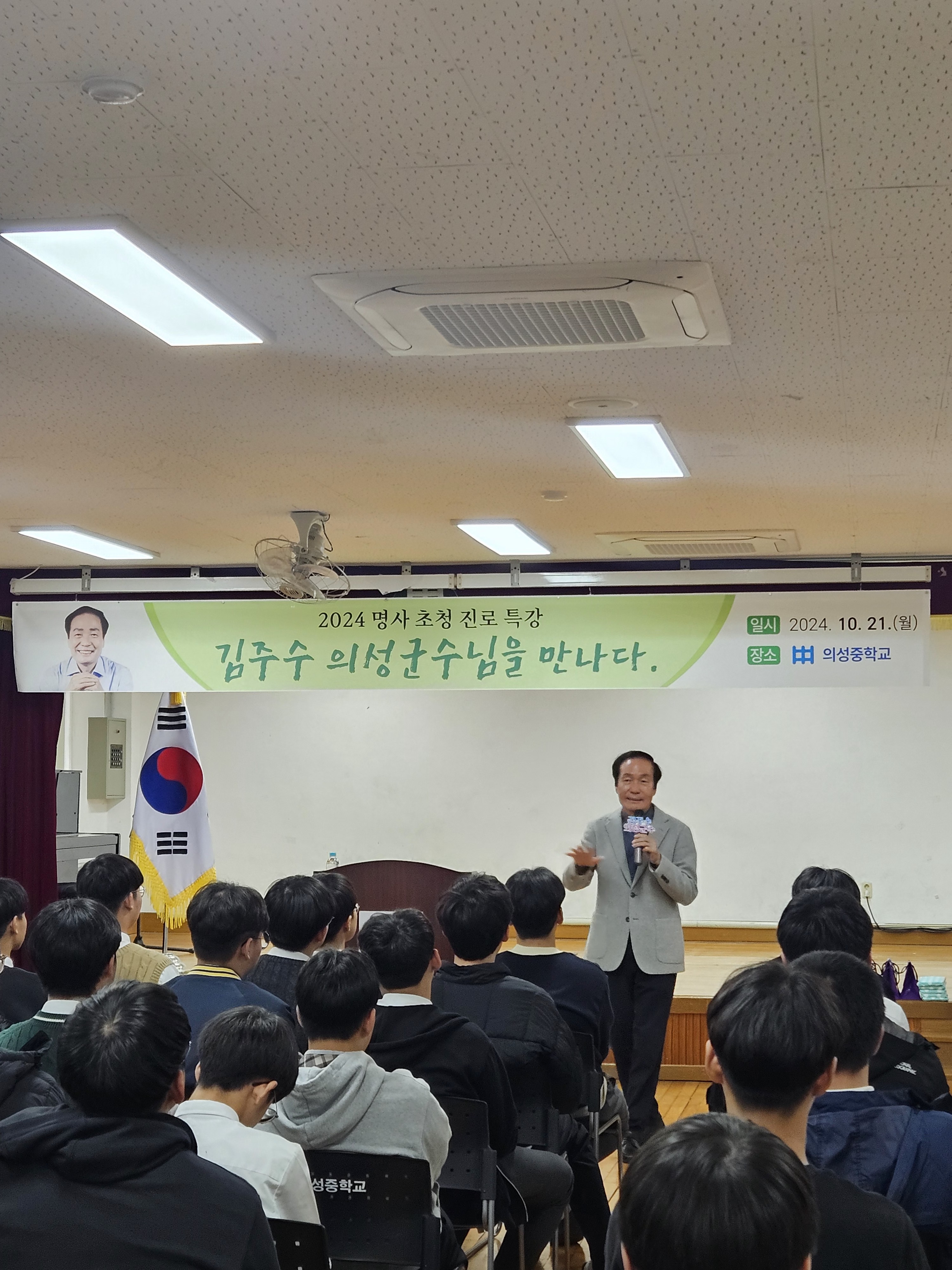 학생들의 진로 진학에 도움을 주고자 중고 연계 전환기 프로그램의 일환으로 진행된 이번 특강은 의성중학교 3학년 학생들이 가장 만나고 싶은 명사로 뽑은 김주수 의성군수님과의 소통이었기에 그 의미가 더욱 깊었다.
