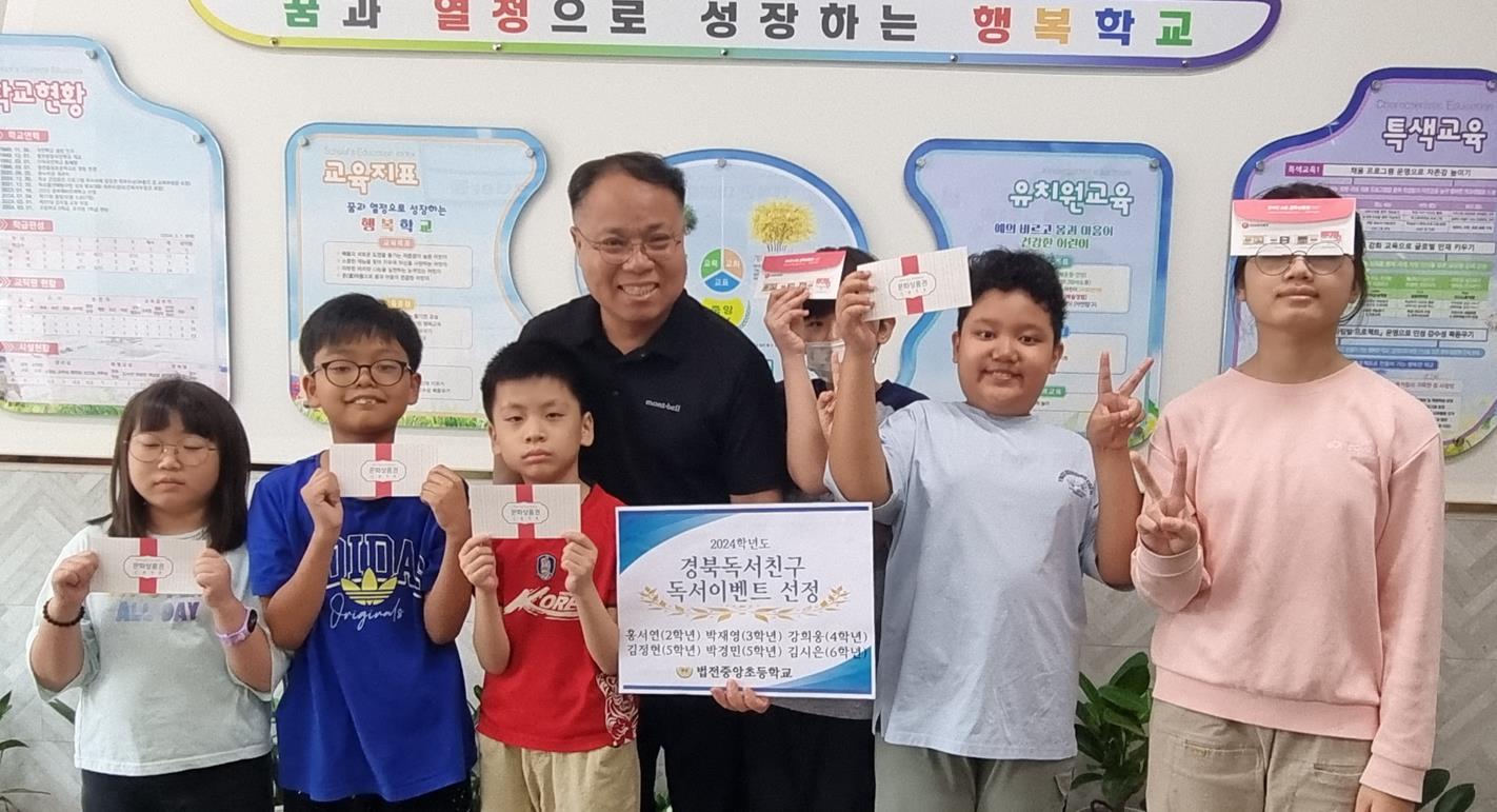 법전중앙초등학교(교장 김지철)는 지난 2024학년도 경북독서친구 독서 이벤트에 참여하여 우수한 성적을 거두었다.