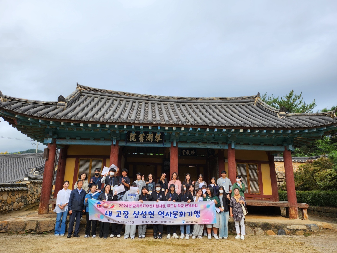 □ 장산중학교(교장 조보옥)는 10월 19일 학생 25명과 교직원 5명을 대상으로 내 고장 역사탐방 5회기로 금호서원과 환성사를 방문하여 한국의 전통 문화와 역사에 대한 이해를 깊이 있게 다졌다.