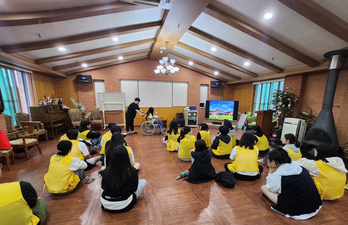 - 시설 소개를 시작으로 자원봉사자 기본 교육을 실시 하였으며, 이어서 장애 체험을 통해 신체적인 제한과 불편함을 직접 느껴보는 시간을 가졌다. 마지막으로 어르신들이 자주 사용하는 휠체어를 깨끗하게 닦고, 복도 및 시설 주변을 정리하며 활동을 마무리 했다.