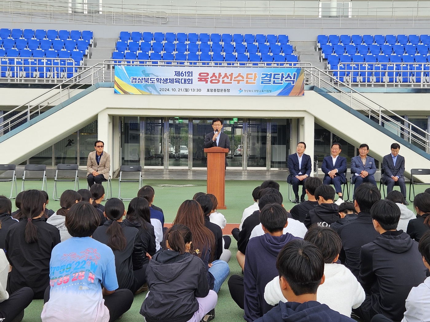 포항교육지원청(교육장 최한용)은 10월 21일 월요일 13시 30분 포항종합운동장에서 2024 경북학생체육대회에 출전하는 육상선수단 결단식을 개최했다.