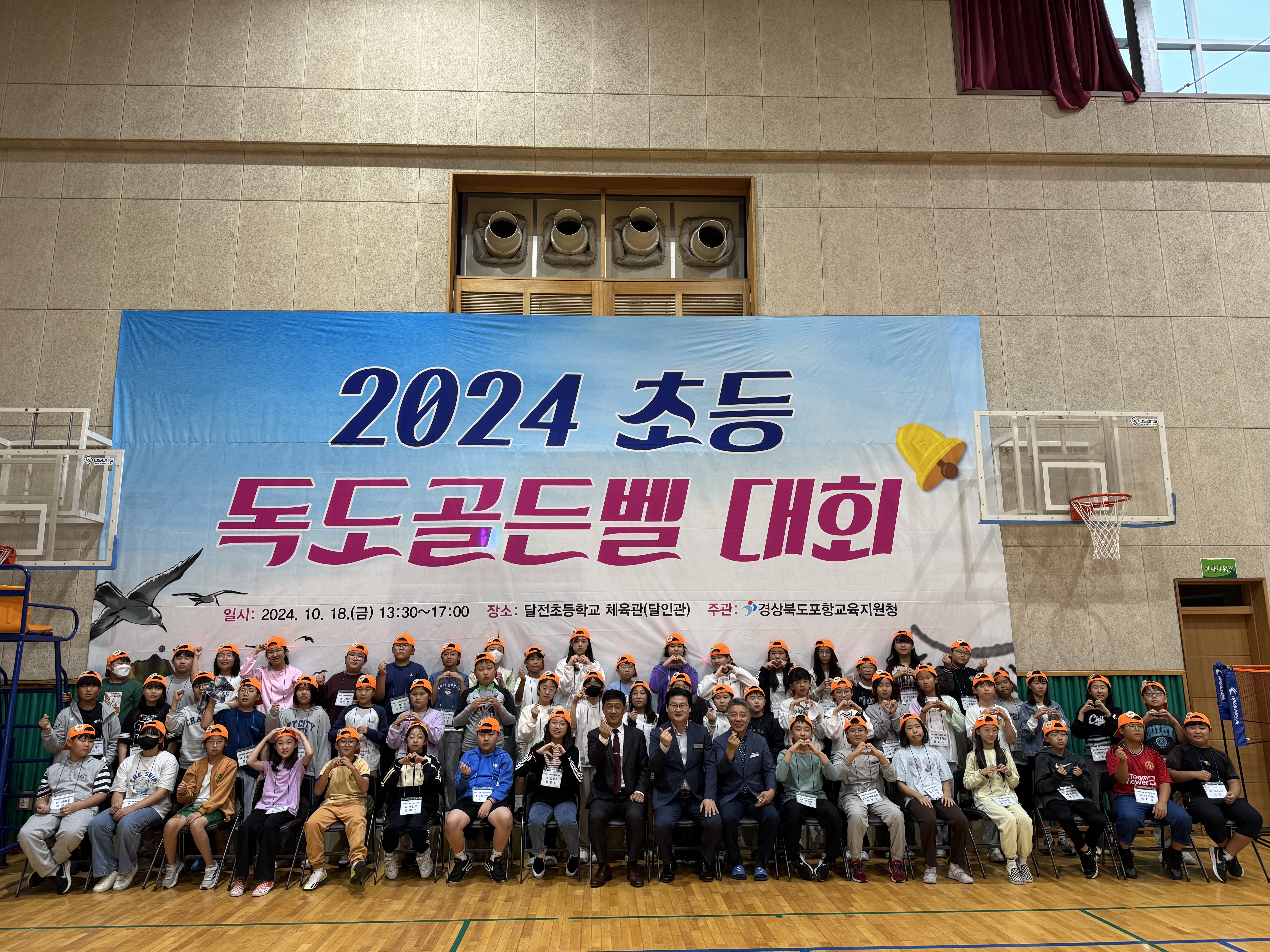 □ 포항교육지원청(교육장 최한용)은 10월 18일(금)에 관내 초등학교 56교 대표 56명의 학생을 대상으로 달전초등학교 체육관에서 ‘2024 초등 독도골든벨 대회’를 개최하였다.