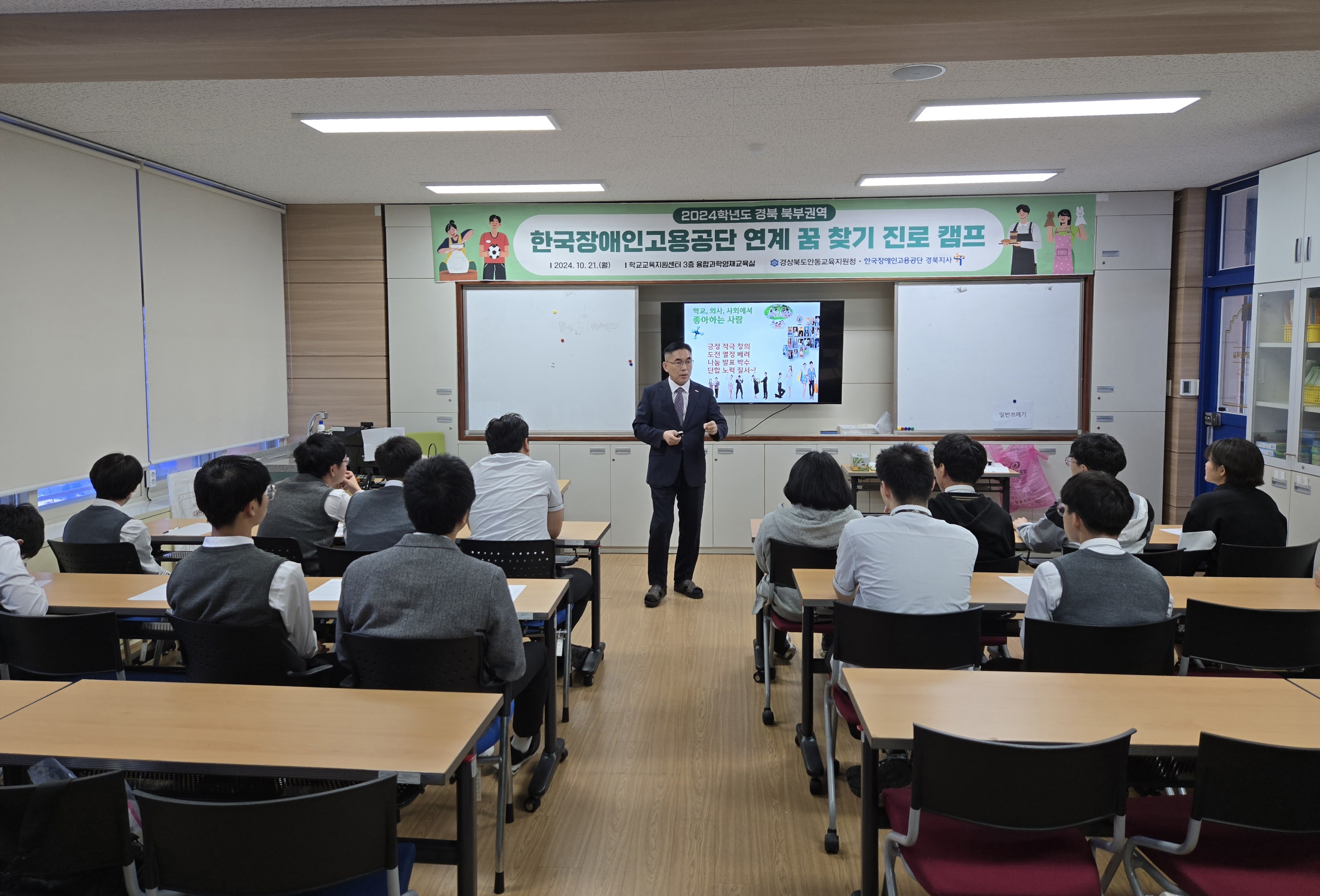 □ 경상북도 안동교육지원청(교육장 안중환)은 10월 16일(수) 경북 북부권역(안동‧영주‧문경‧영양‧예천‧의성‧봉화) 중‧고등학교 특수학급 학생을 대상으로 「2024학년도 안동영명학교 학교기업 연계 진로직업 페스티벌」을 운영했다.