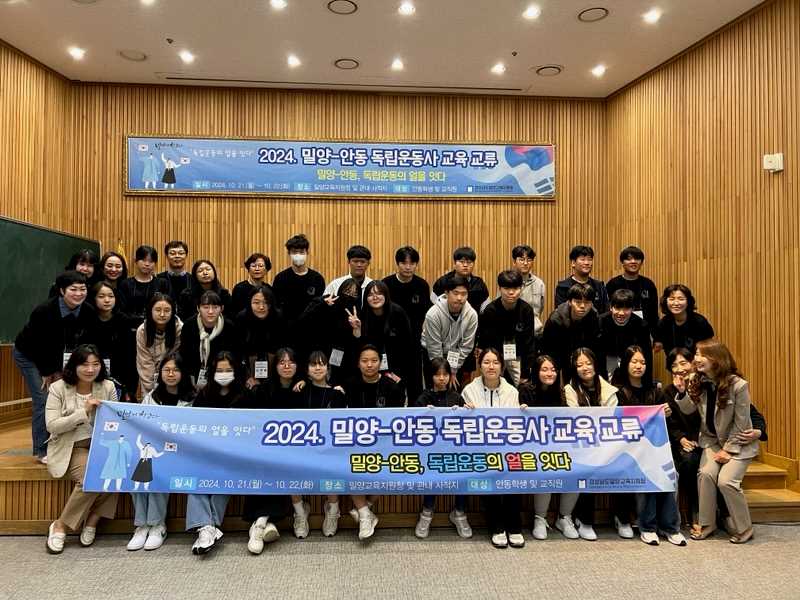 □ 경상북도안동교육지원청(교육장 안중환)은 10. 21.(월)~22.(화) 1박 2일간 안동 관내 학생, 교원, 안동교육지원청 관계자 40명이 참석한 가운데 안동-밀양 독립운동사 교육 교류사업을 운영한다.