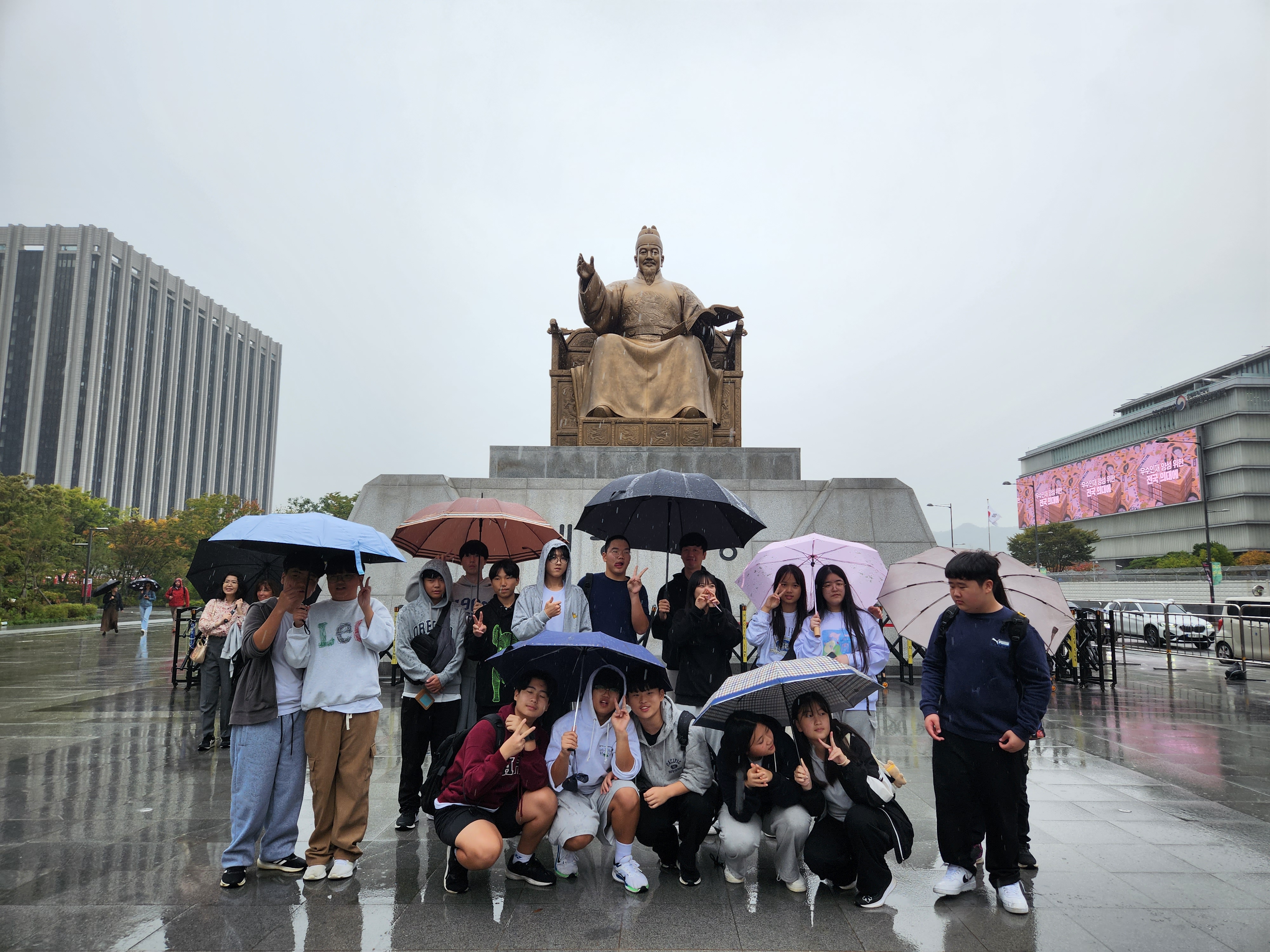 □ 지보중학교(교장 홍명선)는 2024년 10월 18일, 학생 17명을 대상으로 서울의 역사와 문화를 체험하기 위한 탐방을 실시했습니다. 이번 탐방은 경복궁 해설 투어, 『첩종』 특별행사 관람, 대한민국역사박물관 방문, 평화의 소녀상 관람, 교보문고에서의 도서 탐색 및 구매, 대학로에서의 뮤지컬 관람 등 다채로운 프로그램으로 구성되었습니다.