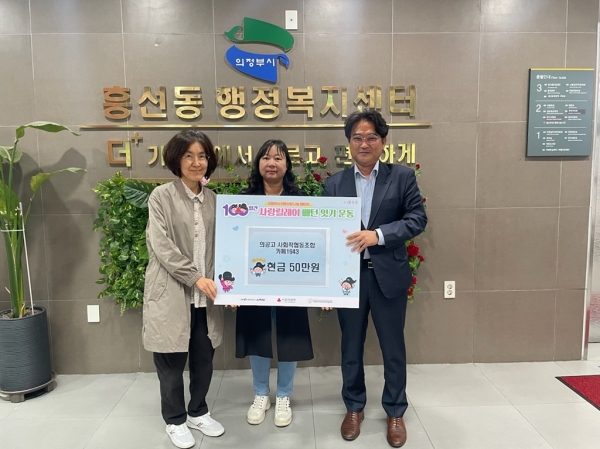 [금요저널] 의정부시 흥선동행정복지센터는 10월 21일 흥선동 지역사회보장협의체 위원의 복지자원 발굴 및 연계로 의공고 사회적협동조합 카페 1943이 현금 50만원을 기부해 ‘100일간 사랑릴레이 배턴 잇기’ 첫 기부 주자로 나섰다고 밝혔다.