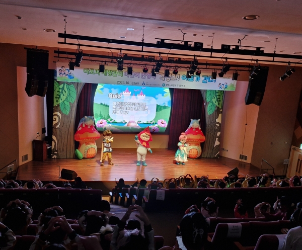 이번 공연은 아토피 피부염 예방관리에 대한 올바른 건강 지식을 심어주기 위해 지역 내 미취학 아토피·천식 안심학교에서 신청받은 어린이집 7곳, 유치원 1곳 등 360명을 대상으로 진행됐다.