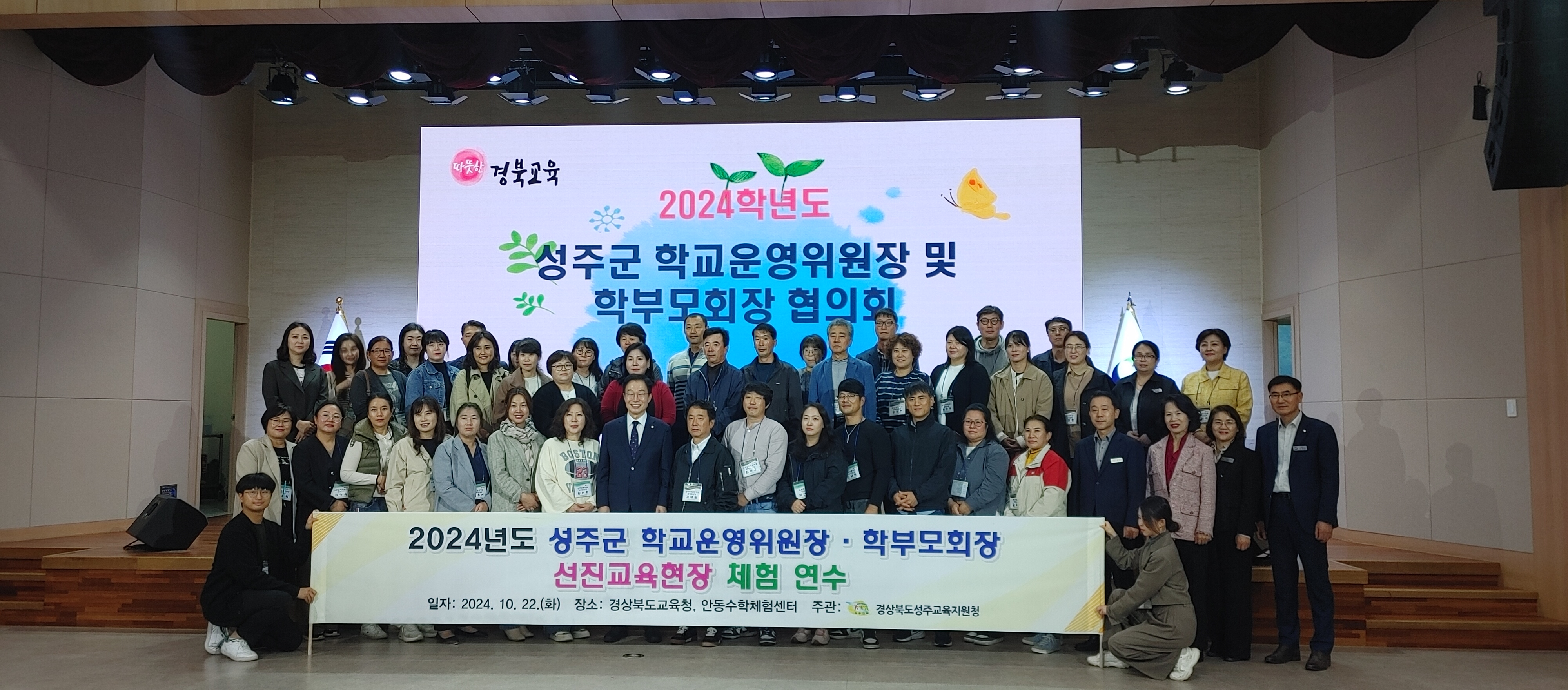 □ 경상북도성주교육지원청(교육장 정수권)은 2024년 10월 22일(화) 관내 유·초·중·고등학교 학교운영위원장, 학부모회장을 대상으로 2024년 선진교육현장 체험 연수를 실시하였다.