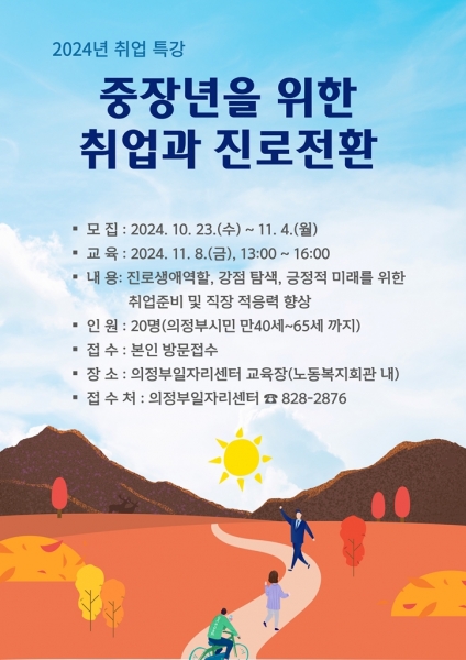 의정부시, ‘중장년을 위한 취업과 진로전환’ 취업 특강 참여자 모집