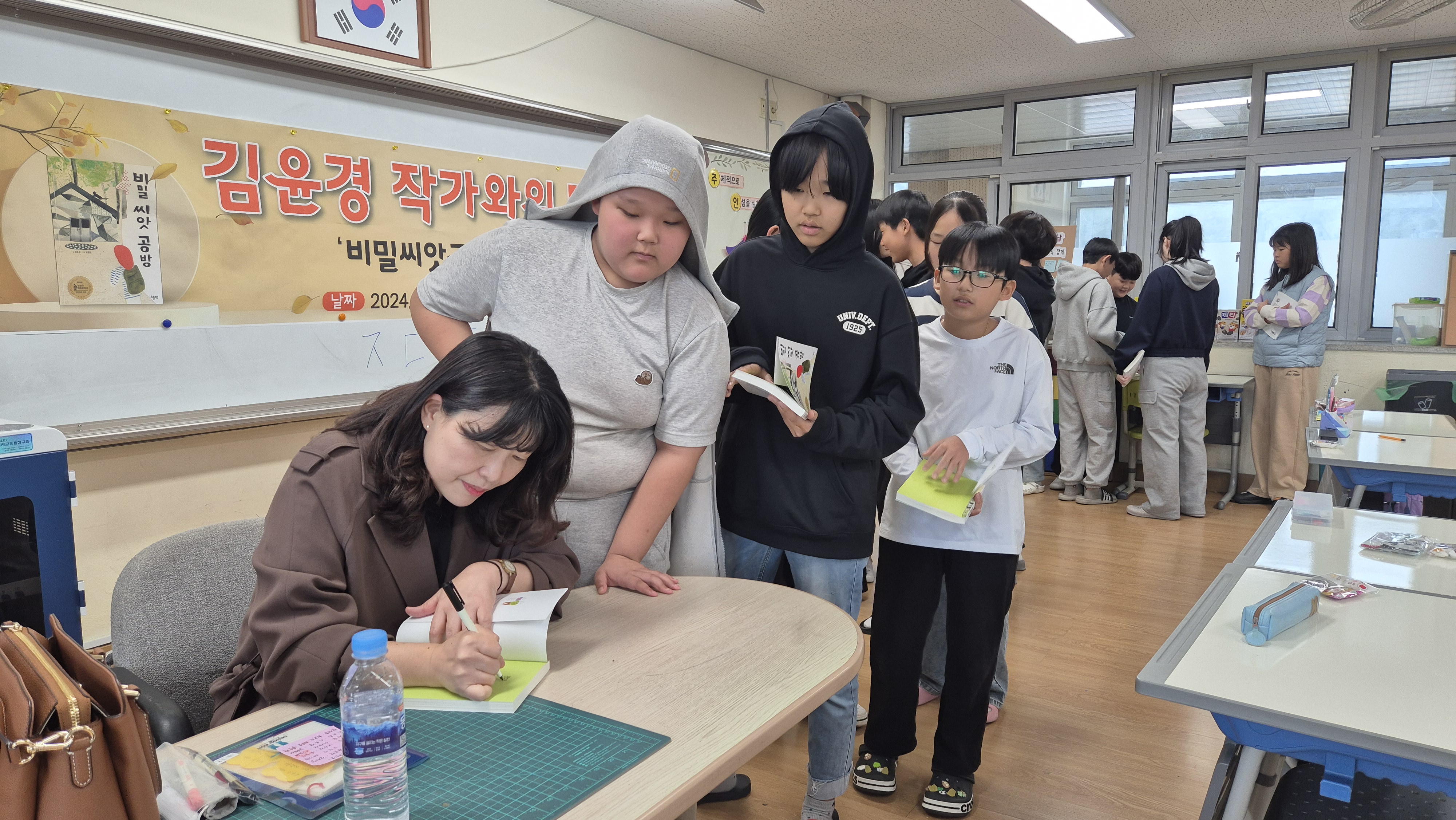 - 이번 활동에서 작가님의 사인을 받은 춘양초 6학년 여OO 학생은 “제 꿈도 웹소설 작가인데, 작가님과의 만남을 통해 더욱 제 꿈에 가까이 다가간 것 같은 느낌이에요.”라고 전했다.