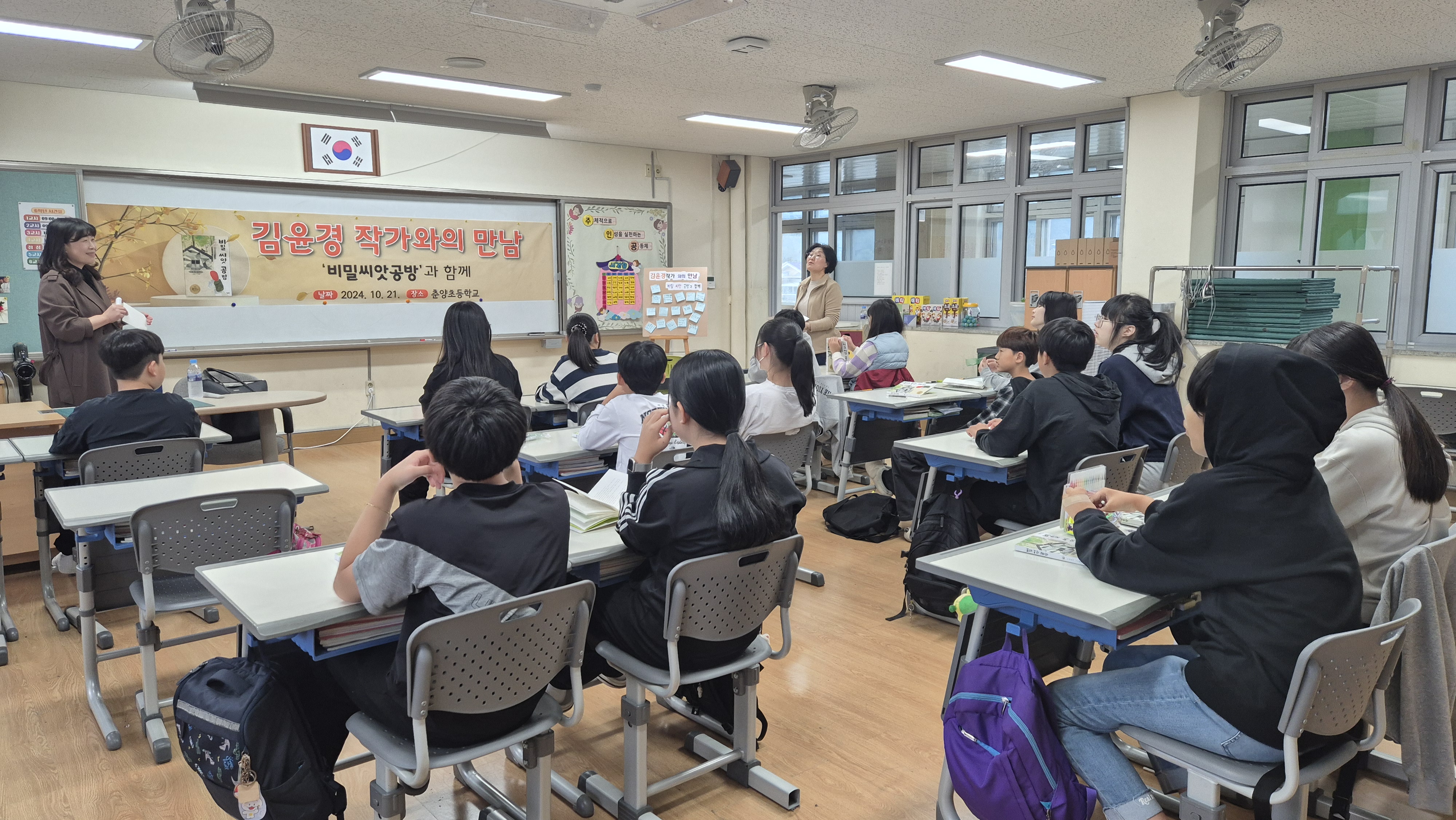 - 춘양초등학교(교장 이영관)는 경북독서친구 독서 플랫폼을 활성화하고, 지역사회와 연계한 다양한 독서교육을 실현하기 위해 지난 10월 21일 (월) “비밀 씨앗 공방 작가와의 만남”을 춘양초등학교 교실에서 진행하였다.