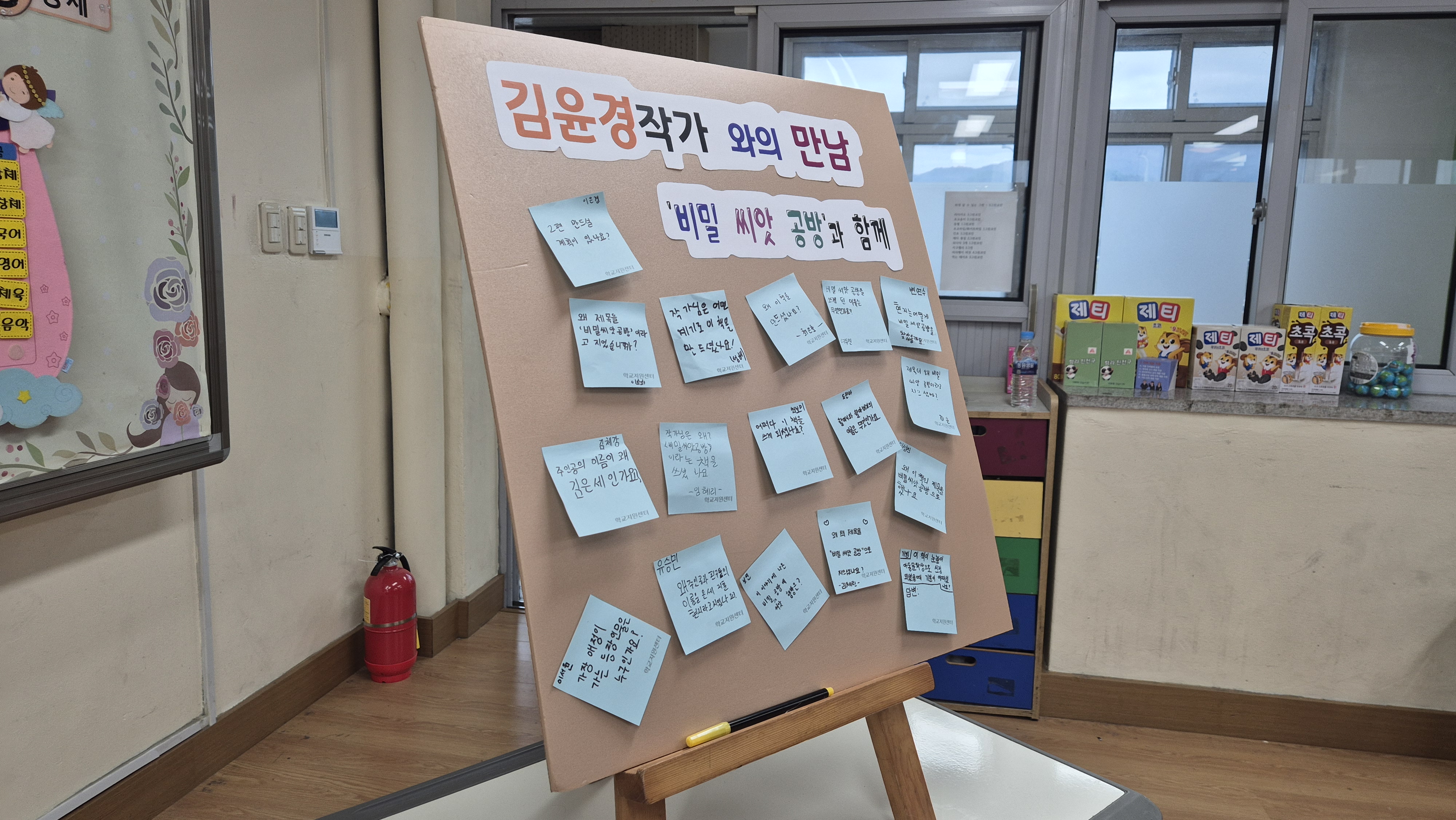 그리고 작가와의 만남에서는 김윤경 작가님이 글 작가가 되기로 결심한 과정, 이야기를 짓게 된 계기, ‘비밀 씨앗 공방’ 줄거리 및 퀴즈 타임 등 다양한 활동을 통해 학생들이 책을 작가의 관점에서 바라볼 수 있는 계기가 되었다.
