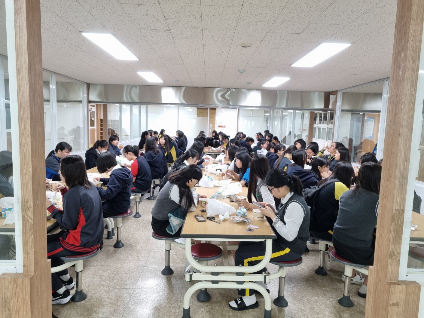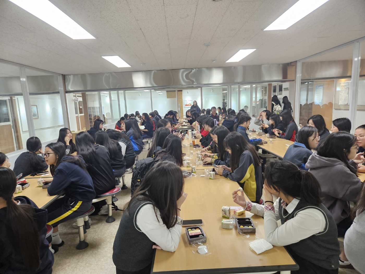 ☐ 경산여자중학교(교장 최보용)는 경산교육청 주관 [학생 아침 간편식 지원사업] 시범학교로 선정되어 10월~12월까지 40일간에 걸쳐 청소년기 학생들의 건강증진 및 수업 집중도 향상을 위하여 수업 시작 전에 간편식을 지원한다.