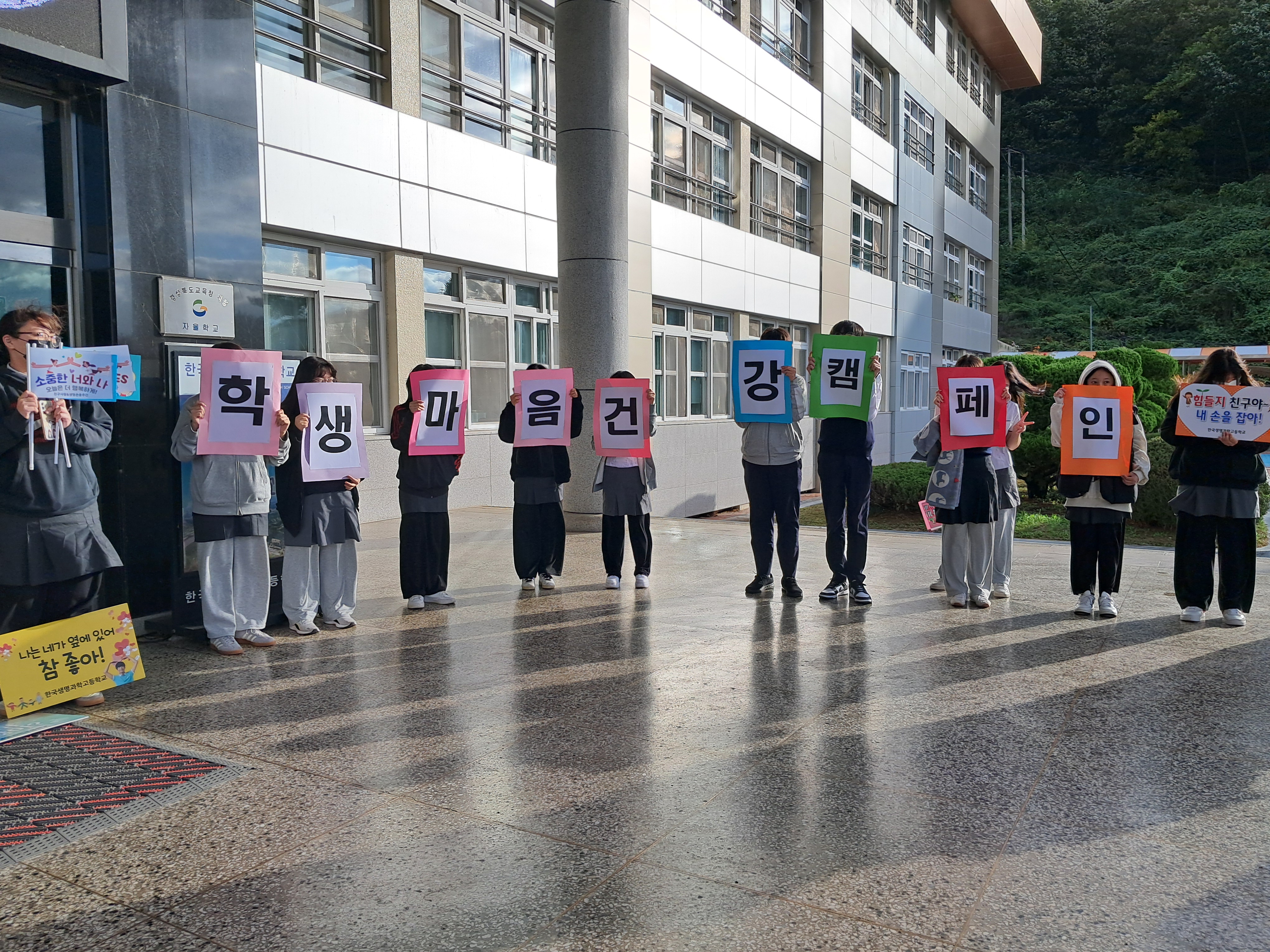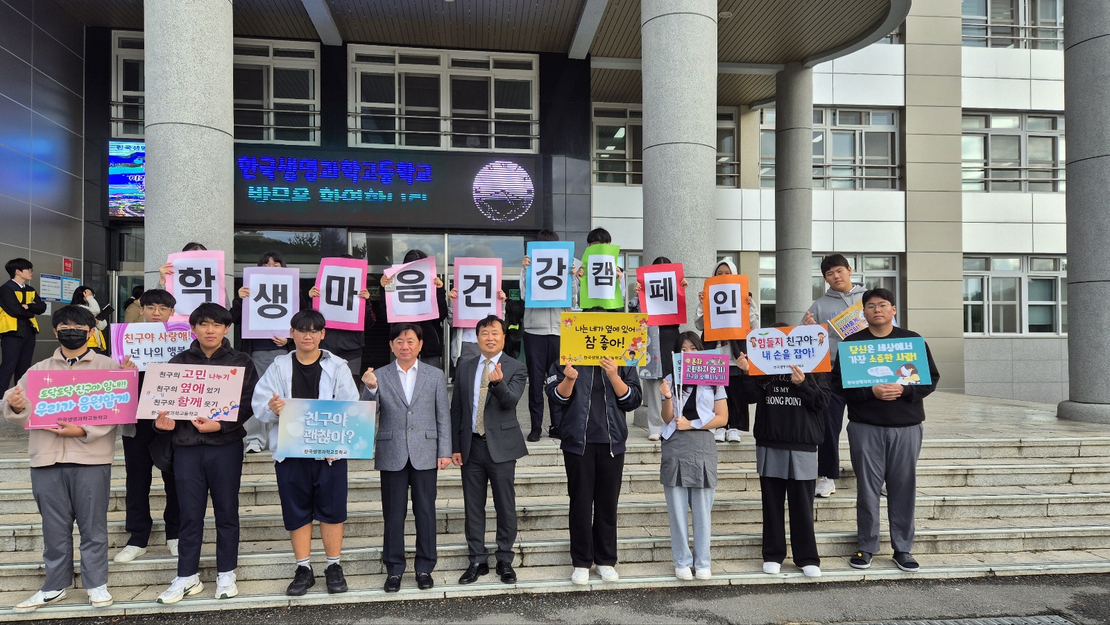 □ 한국생명과학고등학교(교장 장재익)는 10월 23일(수) 전교생 및 교직원이 함께 참여하는「2024학년도 학생 마음건강 캠페인」을 실시하였다.