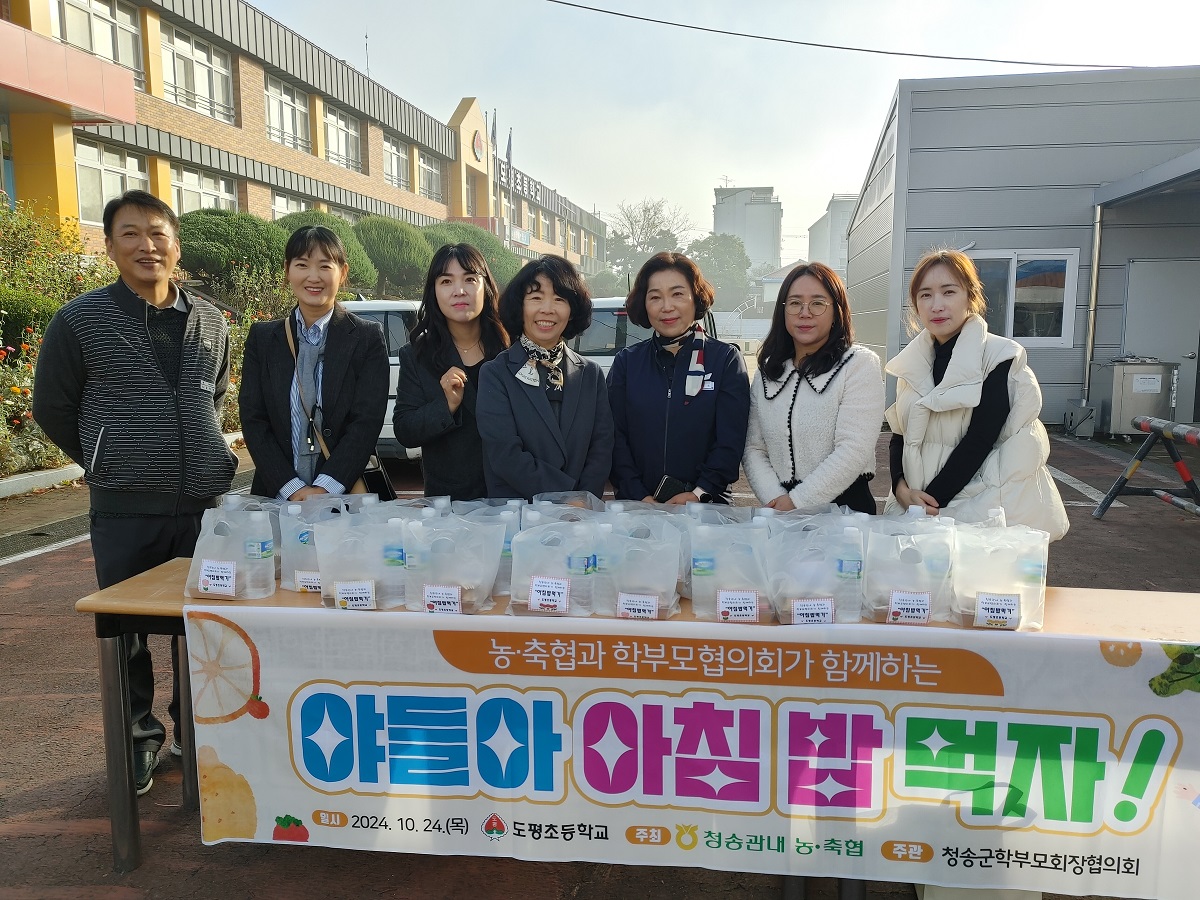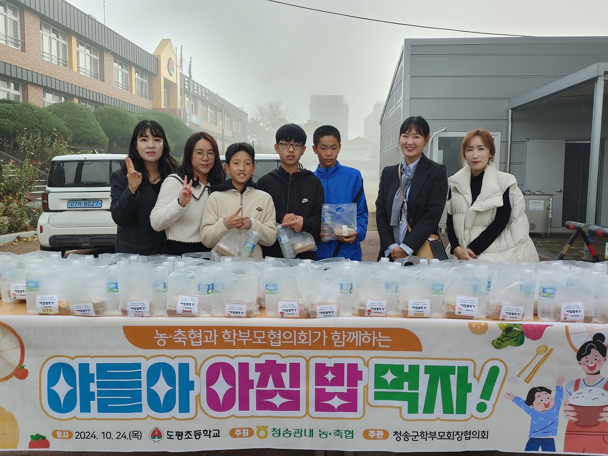□ 도평초등학교(교장 오정선)는 10월 24일(목), 남청송농협 주최, 학부모회 주관으로 교문 앞에서 전교생과 전 교직원을 대상으로‘야들아, 아침밥 먹자!’ 캠페인을 실시하였다.