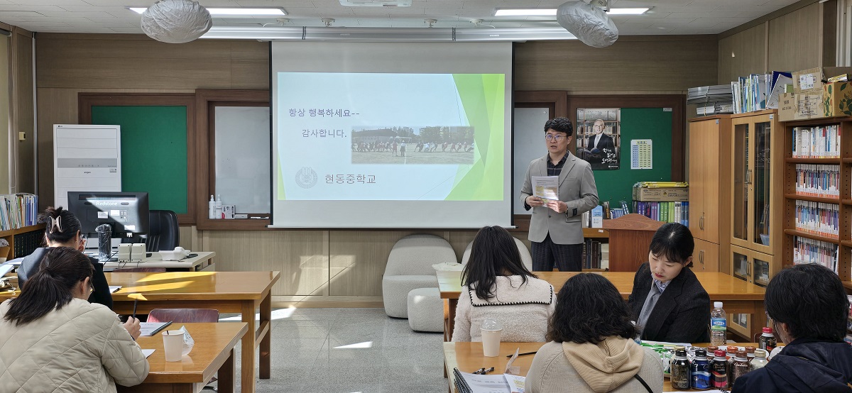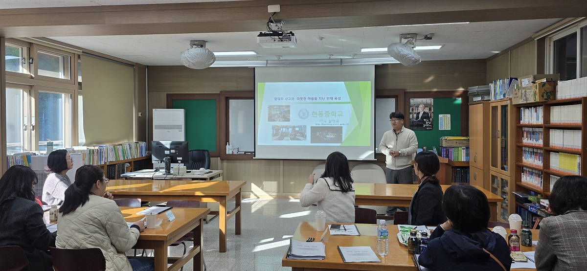 - 현동중학교(교장 김양훈)는 10월 24일(목) 1교시에 학교설명회를 실시하고, 2교시부터 4교시까지 학부모를 대상으로 공개수업를 실시하였다.