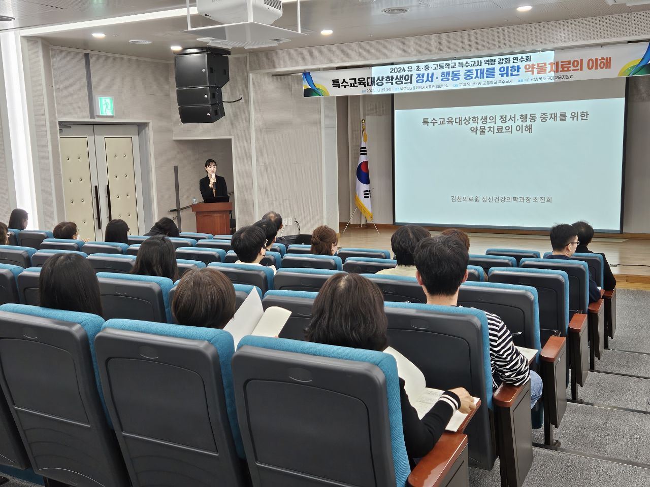 경상북도구미교육지원청(교육장 남성관)은 10월 25일(금) 박정희대통령역사자료관 세미나실에서 유·초·중·고등학교 특수교사 100명을 대상으로 ‘특수교육대상학생의 정서·행동 중재를 위한 약물치료의 이해’를 주제로 특수교사 역량 강화 연수를 실시하였다.