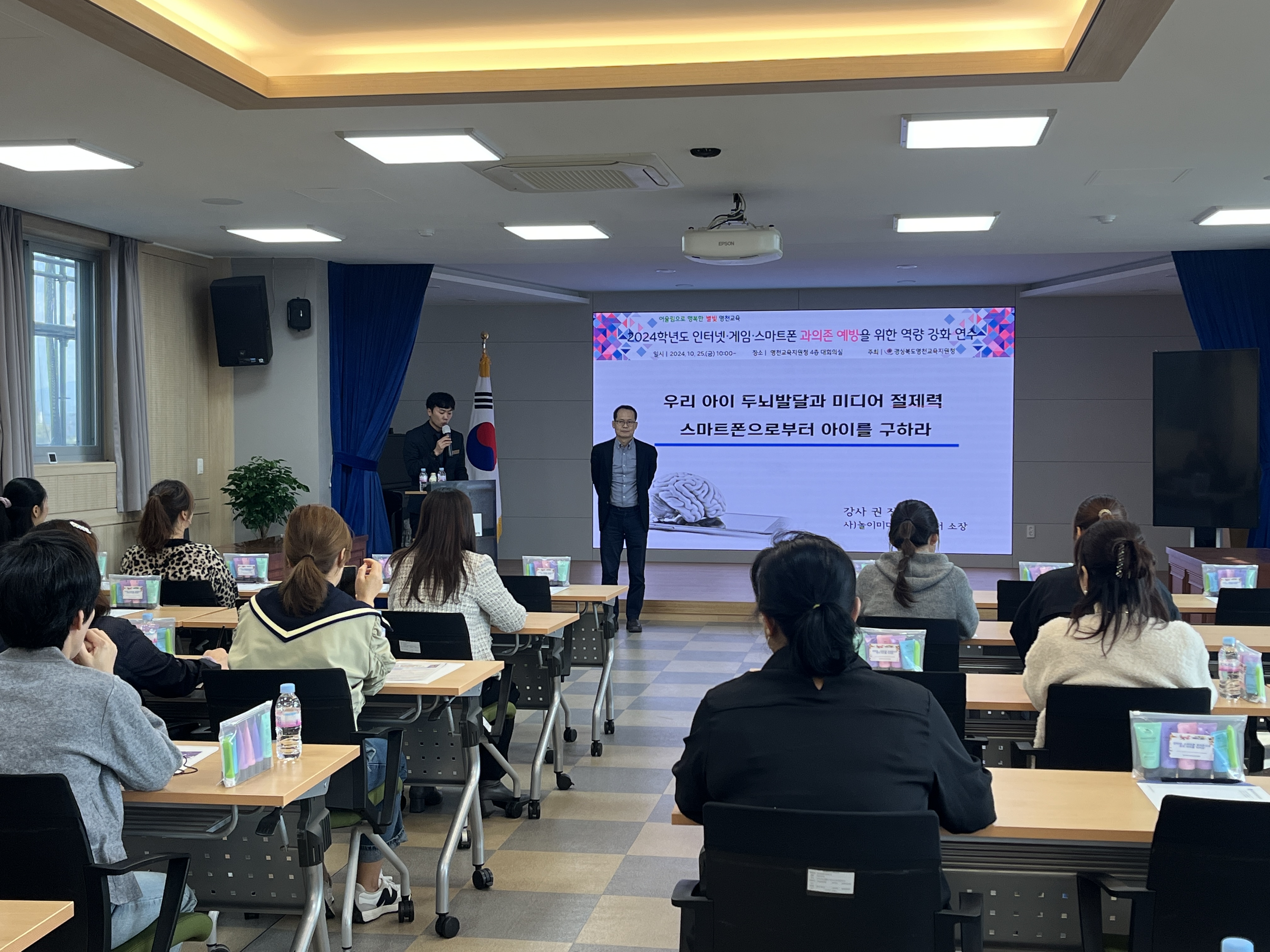 경상북도영천교육지원청(교육장 김희수)은 25일 영천교육지원청 대회의실에서 교원 및 학부모 80명을 대상으로 2024학년도 인터넷, 게임, 스마트폰 과의존 예방을 위한 역량 강화 연수를 실시했다.