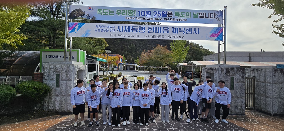 - 현동중학교(교장 김양훈) 전교생들은 10월 25일(금) 학교폭력 및 학업중단예방을 위한 사제동행 한마음 체육행사를 실시하였다.