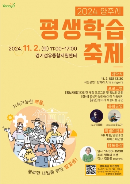 [금요저널] 양주시가 오는 11월 2일 관내 ‘경기섬유종합지원센터’에서 ‘2024년 평생학습 축제’를 개최한다고 밝혔다.