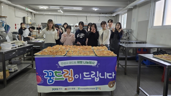 이번 행사는 지역 내 계신 어르신들에게 감사한 마음을 나누고자 안성제과제빵학원의 지도 아래 꿈드림 청소년이 앙금빵을 제작해 청명주간보호센터, 참좋은재가복지센터에 계신 어르신들에게 전달됐다.