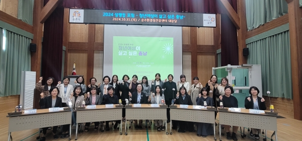 [금요저널] 충남여성가족청소년사회서비스원은 지난 31일 오후 2시 공주시환경성건강센터 대강당에서 ‘청년여성이 살고 싶은 충남’을 주제로 2024 성평등 포럼을 개최했다고 밝혔다.