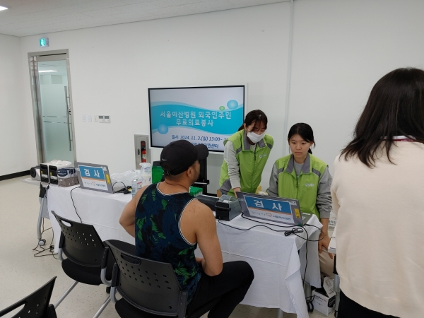 이번 무료 진료는 서울아산병원, 솔모루 이주한삶과 협력해 포천에 거주하는 15개국 출신 외국인 주민 70여명을 대상으로 진행됐다.