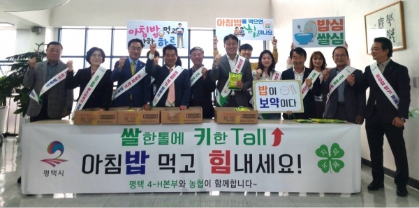 청소년에게 아침밥 먹이기 캠페인을 위해 평택시, 4-H 평택시 본부, 관내 농협에서 대회 참석한 학생들에게 슈퍼오닝 평택쌀을 나눠주며 쌀 소비 촉진 홍보를 했다.