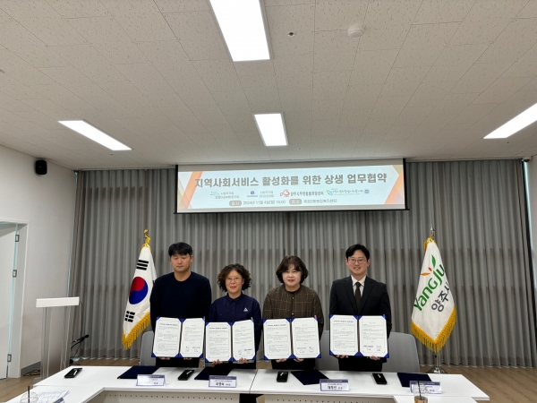 이어 2부 순서로는 사회 서비스 제공 사회적기업 2곳과 양주시옥정종합사회복지관, 양주시무한돌봄희망센터의 지역 사회 서비스 활성화를 위한 상생 업무 협약을 체결했으며 향후 사회적경제기업의 서비스 제공과 지역주민 복지증진 등 상호 간의 발전을 도모했다.