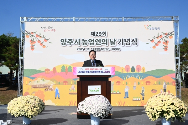 강 시장은 축사에서 “한 해 동안 수확을 위해 노력을 아끼지 않은 농업인들의 영농활동에 대한 노고를 위로하고 양주시 농업 발전에 헌신 봉사하는 관내 농업인들에게 감사드린다”며 “양주시에서 생산된 먹거리는 지역의 정체성을 담은 소중한 자산으로 시는 지역 먹거리가 더욱 사랑받고 발전할 수 있도록 다각적으로 지원하겠다”고 전했다.