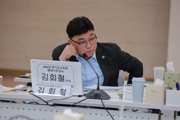 [금요저널] 경기도의회 교육행정위원회 김회철 의원이 11일 군포의왕교육지원청에서 열린 2024년 행정사무감사에서 교육지원청별 2025년도 전면시행 예정인 고교학점제 준비 현황을 점검하고 학교 신설을 위한 전문적인 조직 운영의 필요성을 환기했다.