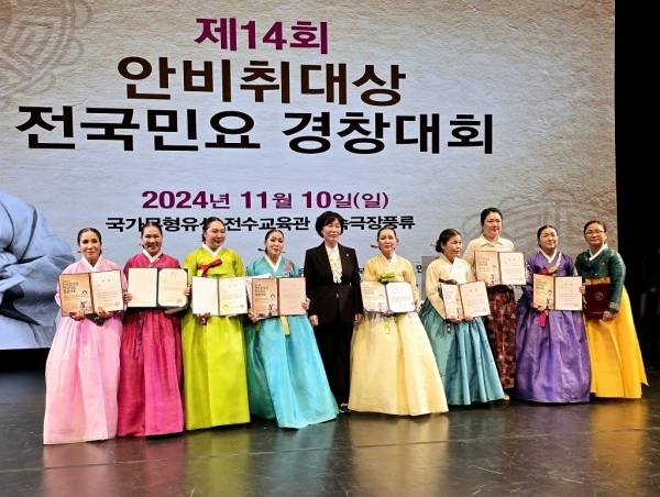 [금요저널] 경기도의회 이채영 의원은 지난 10일 서울 국가무형유산 전수교육관 민속극장 풍류에서 열린 제14회 안비취대상 전국민요 경창대회에서 공로패를 수상했다고 12일 밝혔다.