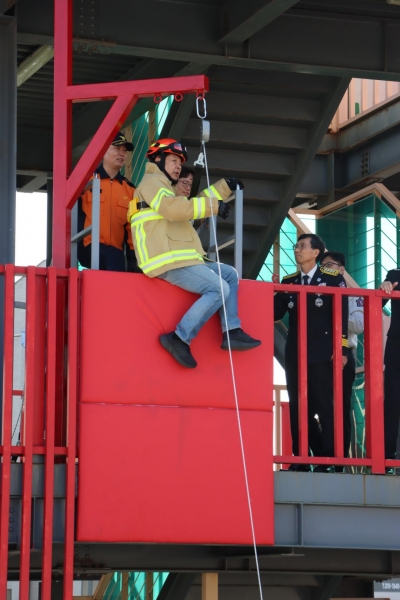 한편 강웅철 도의원은 현장 행정사무감사에 앞서 직접 완강기를 시승해 보며 관련 시설을 점검했다.