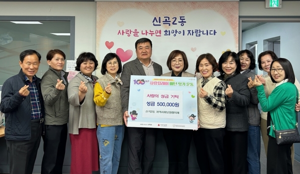 [금요저널] 의정부시 신곡2동주민센터는 11월 13일 신곡2동 지역사회보장협의체가 ‘100일간 사랑릴레이 배턴 잇기’에 동참해 성금 50만원을 기탁했다고 밝혔다.