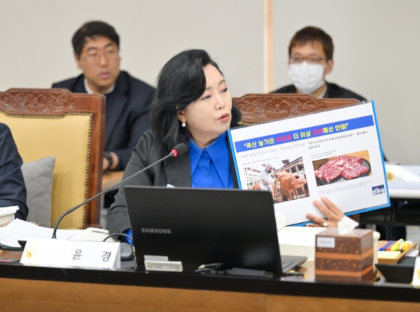 [금요저널] 경기도의회 부의장 정윤경 도의원은 15일 경기도 축산동물복지국을 대상으로 한 2024년 행정사무감사에서 어려운 축산 농가를 위해 피해가 큰 구제역 및 닭 전염성기관지염 백신 지원의 확대를 요구했다.