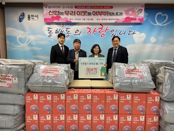 같은날 기흥구 동백2동에서는 수지신협과 신협사회공헌재단이 에너지 취약계층을 위해 차렵이불 20채와 생필품 박스 20박스를 기탁했다.