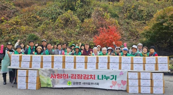 장순덕 부녀회장은 “전달된 김장김치가 관내 어르신 등 이웃들의 월동준비에 조금이나마 보탬이 되기를 바란다”며 “바쁜 와중에도 함께해주신 부녀회 회원 모두에게 감사드리고 앞으로도 지역 어르신에 대한 공경의 마음과 이웃 사랑을 실천하는 금광면 새마을부녀회가 되겠다고”고 전했다.