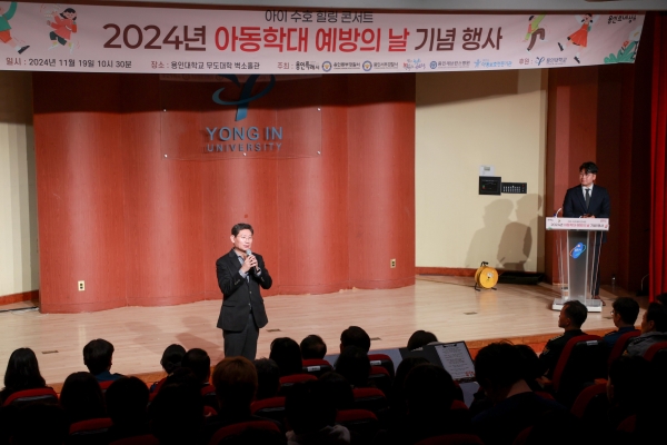 기념식 후 용인대학교 강의실에서 사회복지학과 학생 40여명을 대상으로 신재학 전 용인시아동보호전문기관장의 아동학대 예방교육도 진행됐다.