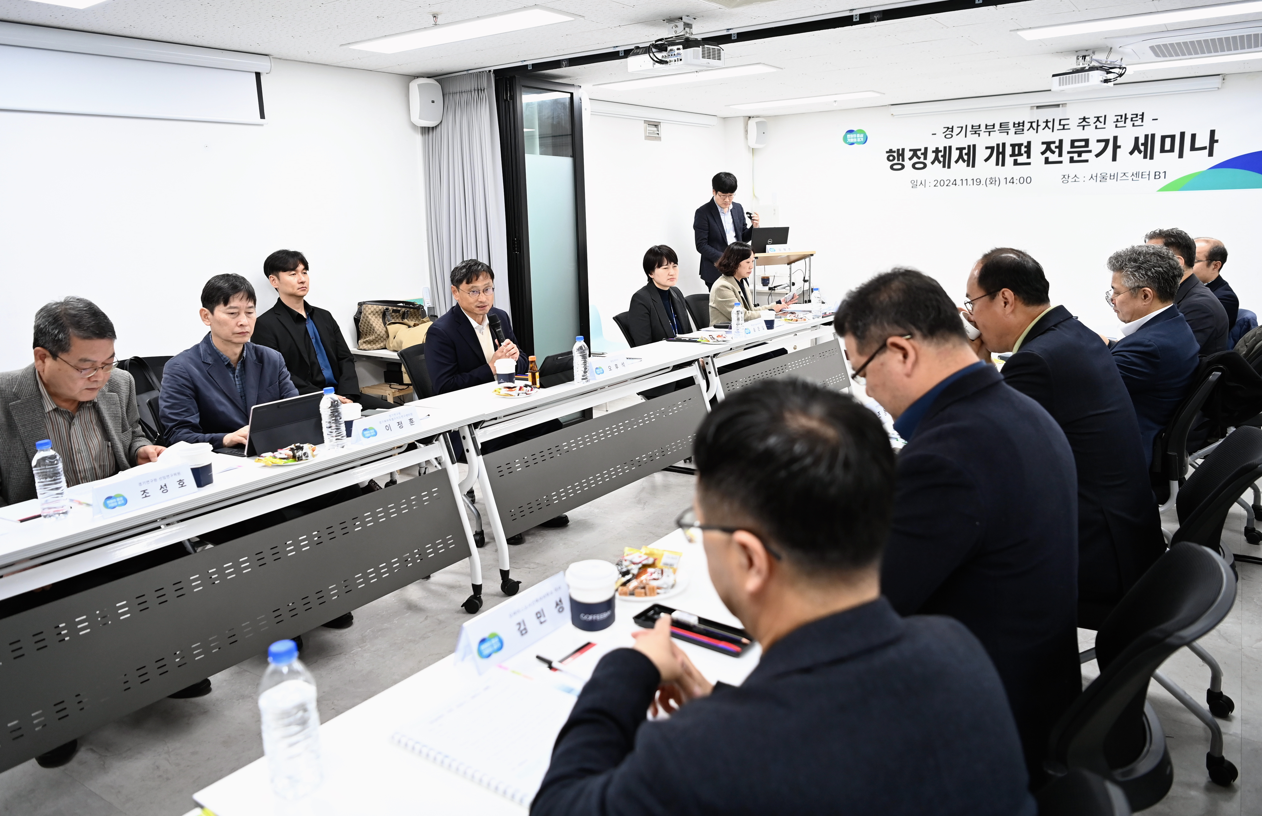경기도는 19일 서울 용산구에 위치한 서울비즈센터에서 경기북부특별자치도 추진을 위한 ‘행정체제 개편 전문가 세미나’를 열었다.